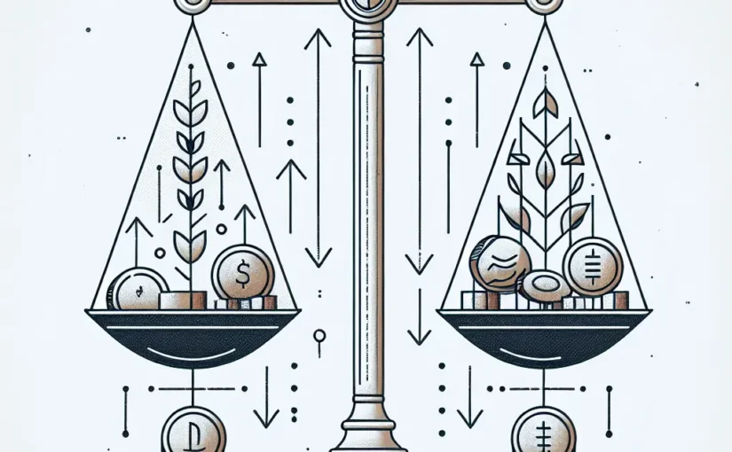 자산 성장과 안정성을 상징하는 균형 저울 일러스트.